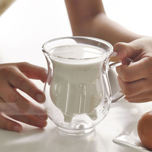 Creative Glass Cow Cups Double Wall Handgrip Milk Cup Mug Insulation Transparent Drinkware Udder Style Creamer Pitcher Jug